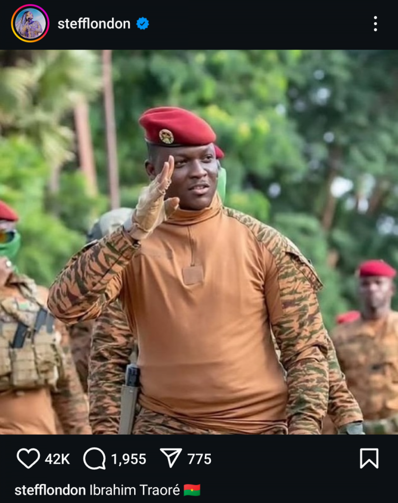 Captain Ibrahim Traore uyobora igihugu cya Burkina Faso akomeje gutuma umuhanzikazi akaba n’umuraperi Stefflon Don amugaragariza amarangamutima menshi kuri we.